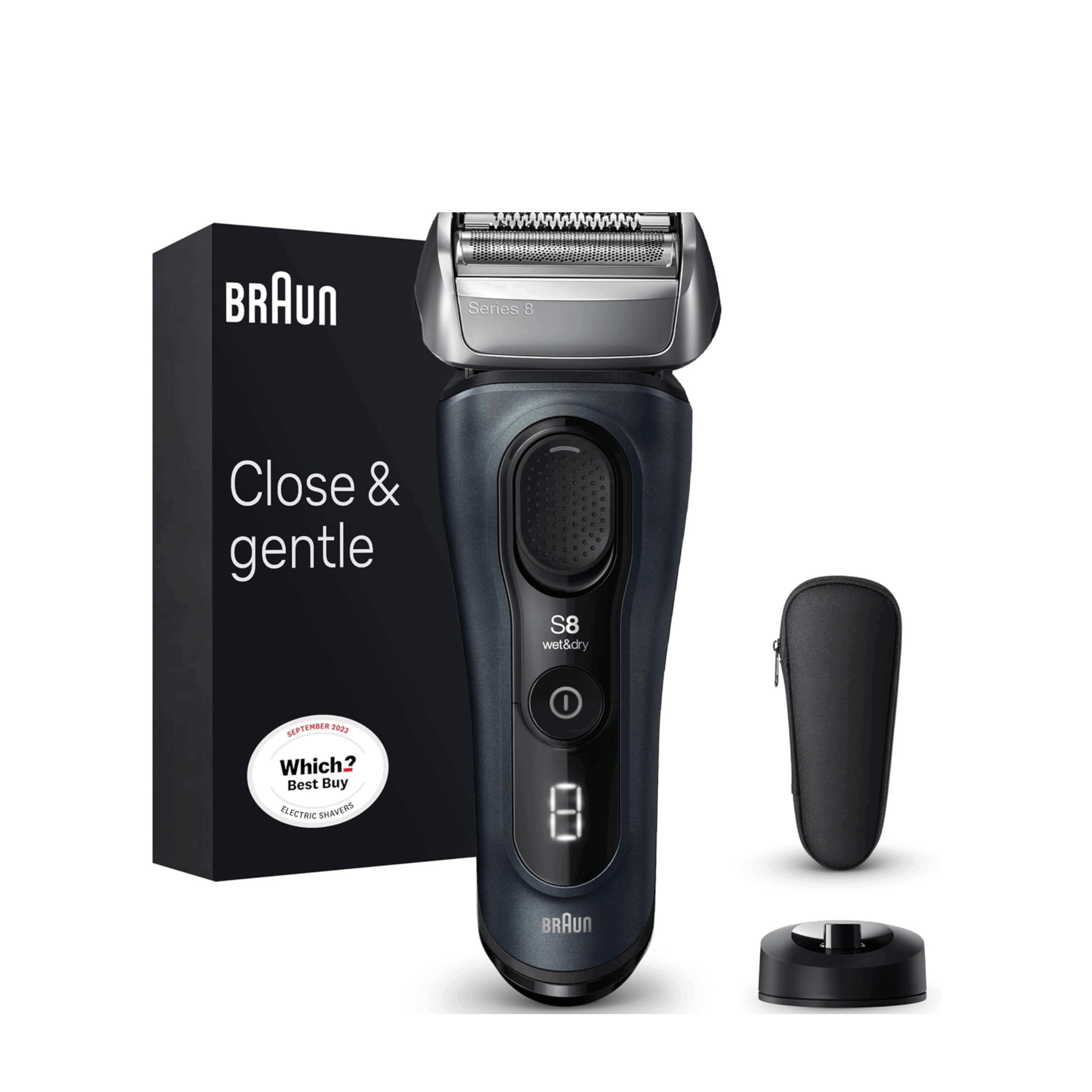 - 4 sonic-powered shaving elements deliver a close and gentle shave even on dense beards