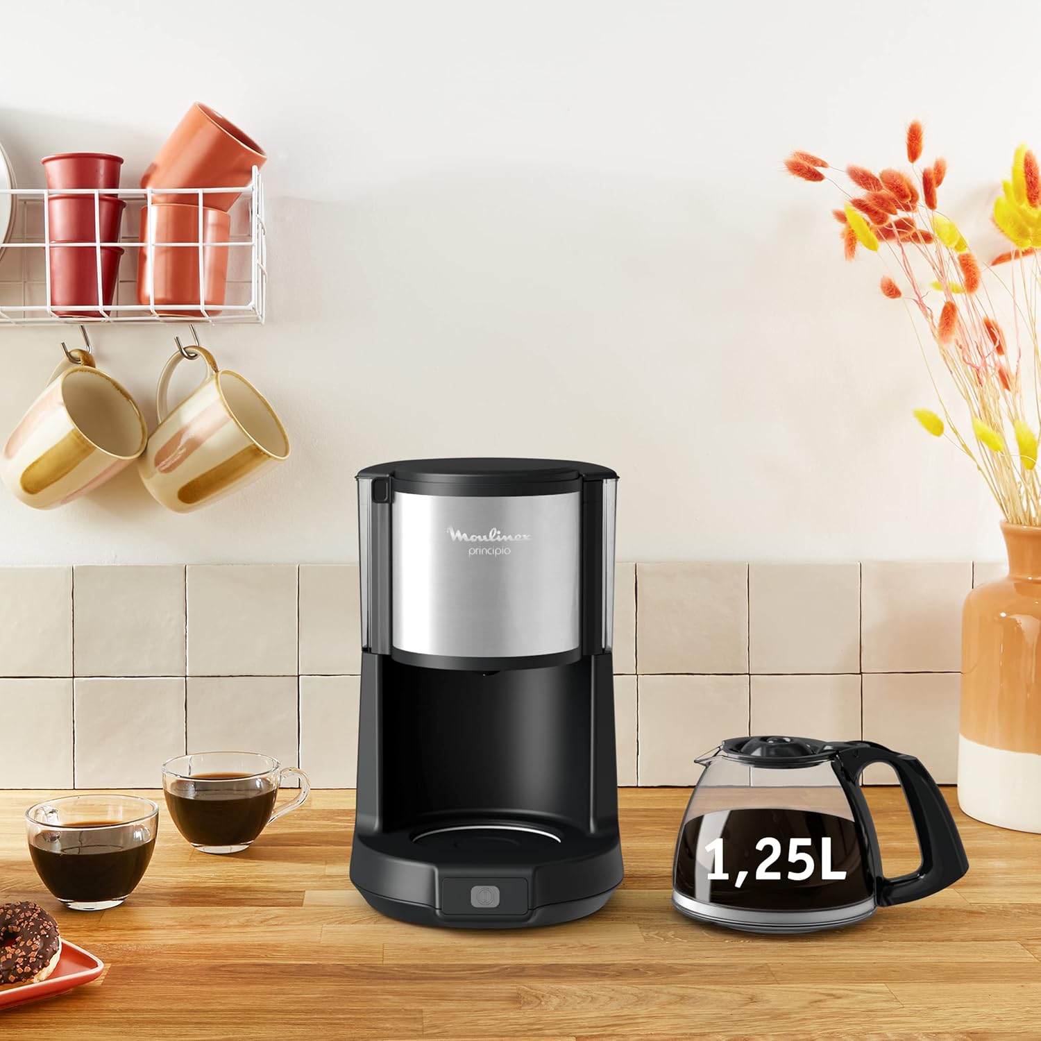 - Stylish filter coffee maker with a 1.25 L capacity, making up to 10-15 cups of coffee