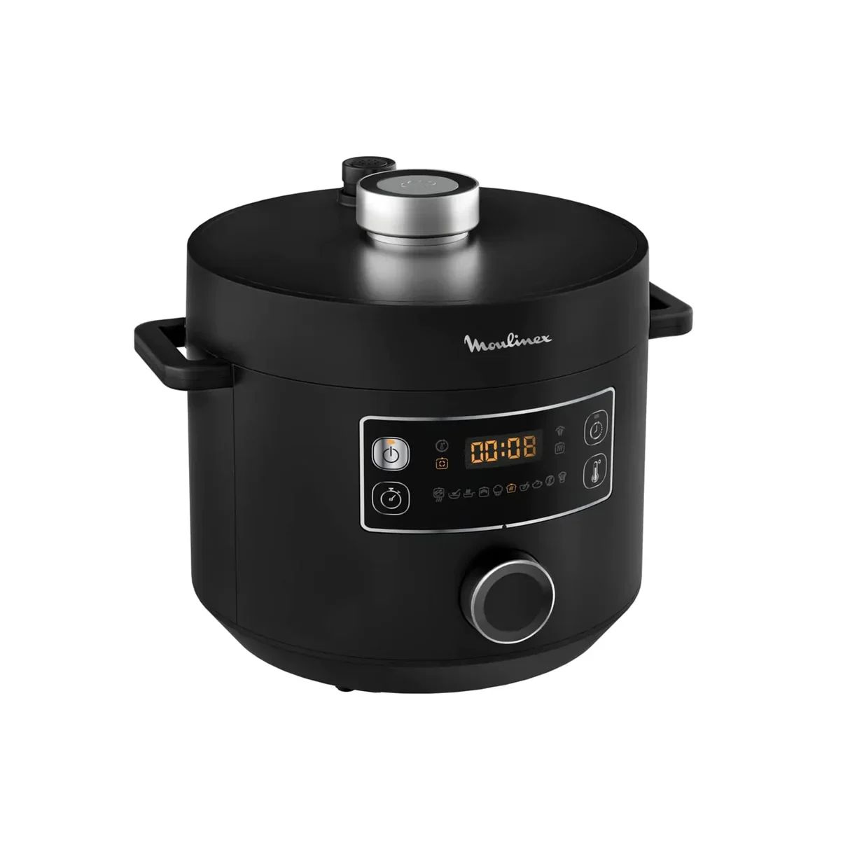Enjoy all your favorite meals in no time. Moulinex TURBO CUISINE is a fast multicooker that produces delicious results up to 3x faster, with a special design for meals that come out perfect every time. Moulinex exclusive spherical bowl offers a larger heating surface with optimal heat diffusion and circulation. The result is tender, juicy results day after day, for all the pleasure of home cooking with none of the hassle. Discover crowd-pleasing family meals from starter to dessert-with one appliance that serves as a pressure cooker, steam cooker, soup maker, and more-all at your fingertips and effortless to master with an intuitive single control knob. Choose from 10 automatic cooking programs plus manual control and experience the difference with the easy-to-use multicooker designed to meet all your cooking needs-for one great kitchen essential that replaces at least seven cooking appliances.