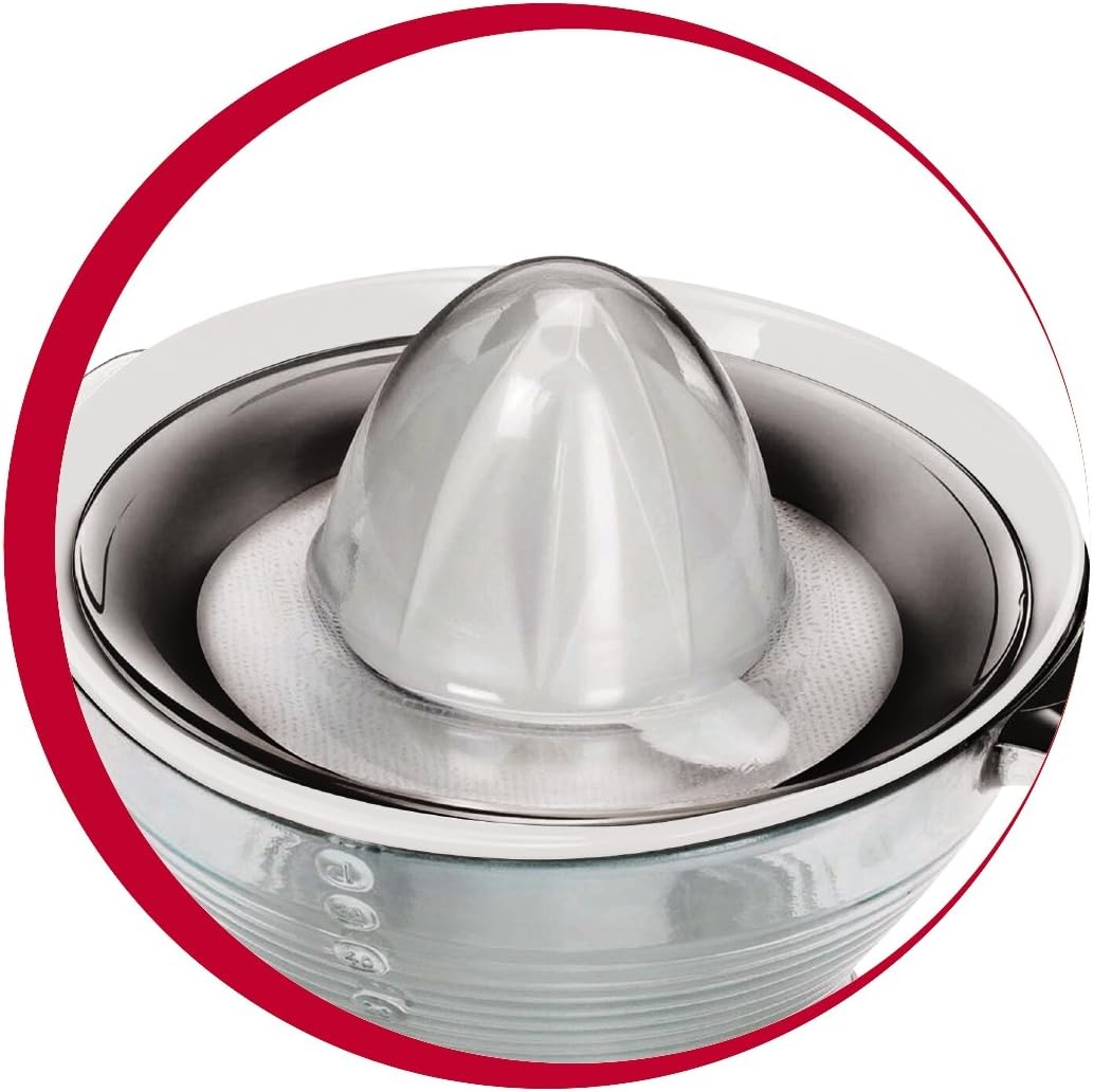 - Automatic on-off: Simply insert citrus into the cone and apply pressure for automatic start/stop.